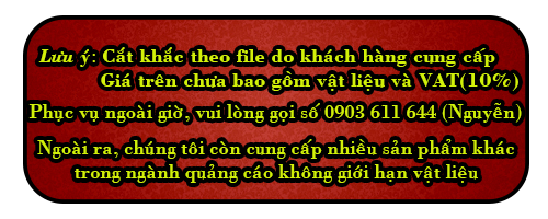 | Mica 2mm | 500đ - 1.200đ/chữ | 1.500đ/dm2 | 1.000đ/dm2 |